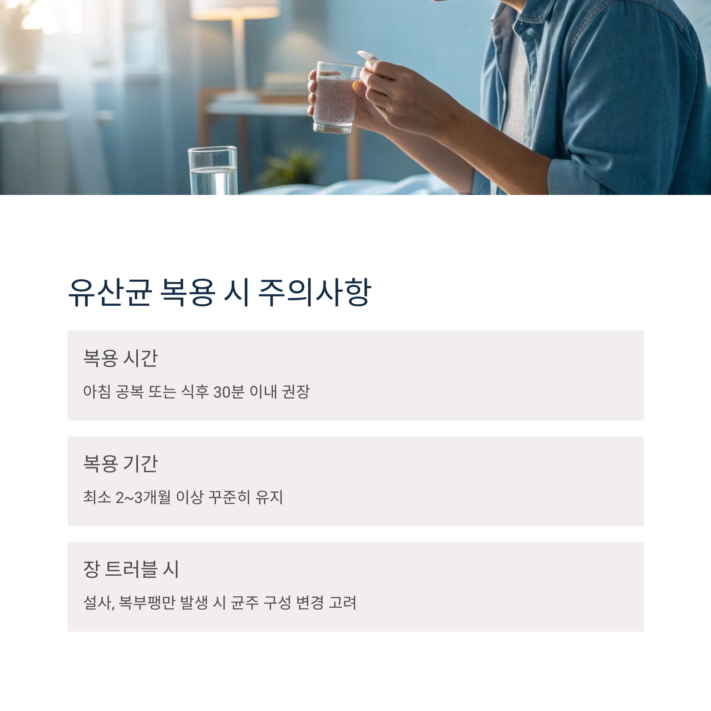 꾸준한 복용과 올바른 식습관의 병행이 장 건강 개선의 열쇠입니다.